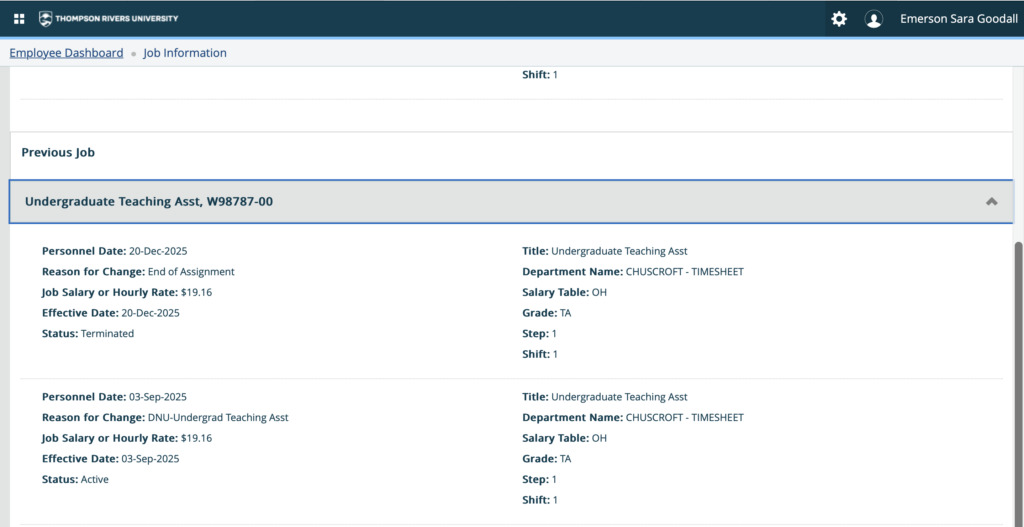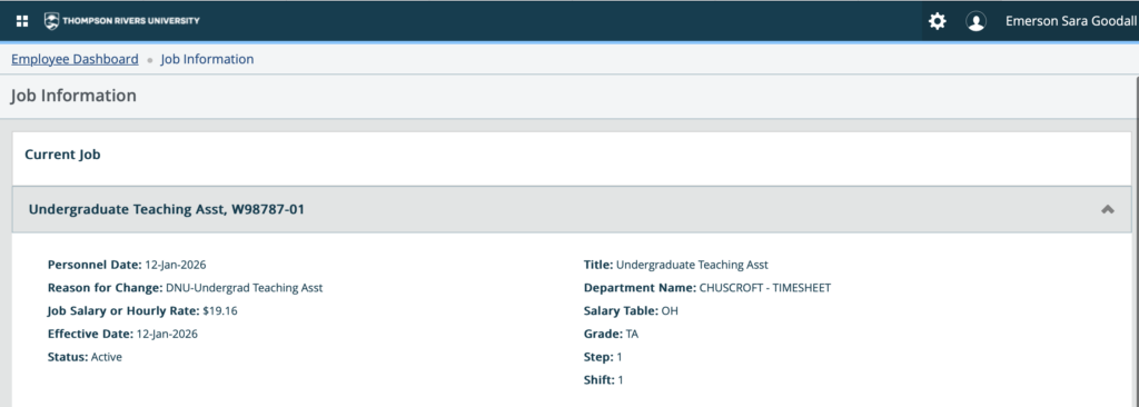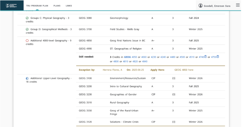 I became a Teaching Assistant at TRU for professor Crystal Huscroft in 2025 and continued in the position for the current 2026 school year. The Teaching Assistant position encompasses instructing a first year geography lab for GEOG 1000 (Planet Earth – Introduction to Earth System Sciences). I taught a total of three labs, and enjoyed the commitment it allowed me to make towards educating younger generations about the impacts of Climate Change. This position significantly improved my confidence; increasing my ability to effectively communicate, to lead in an academic setting, and to share my passion towards understanding the natural environment and the processes that occur on it and influence it.