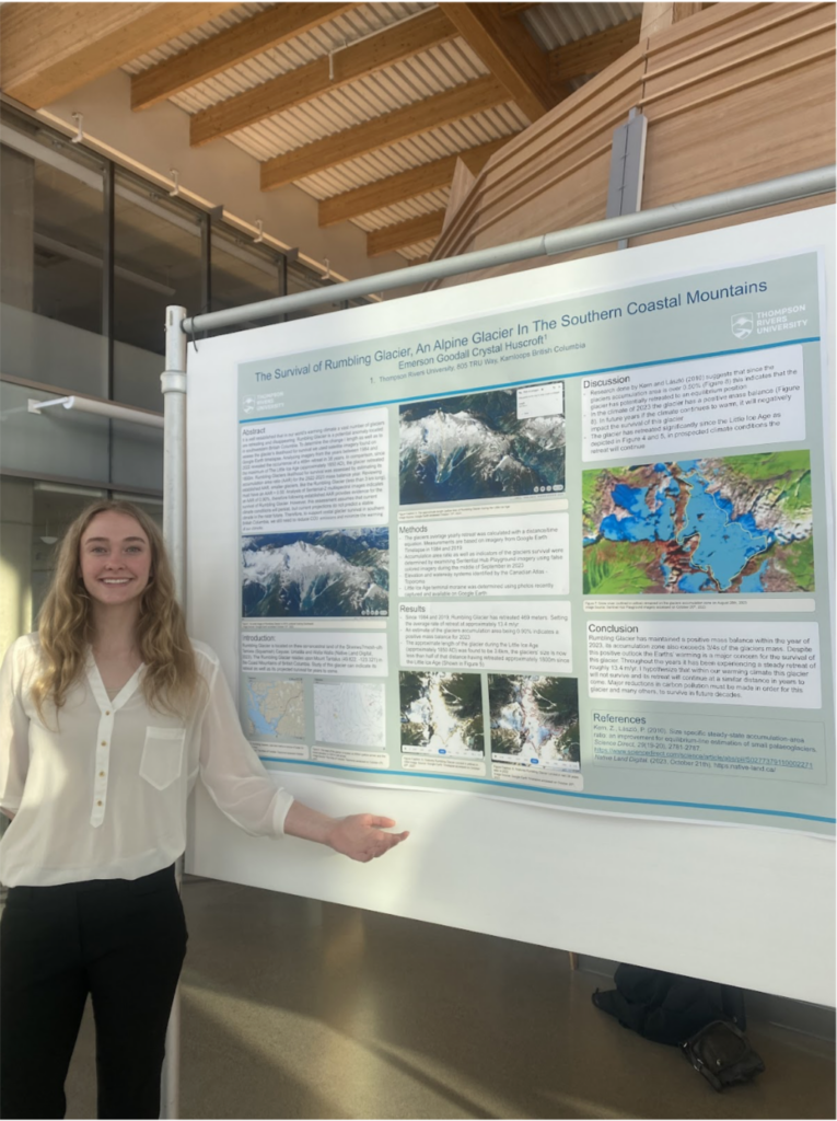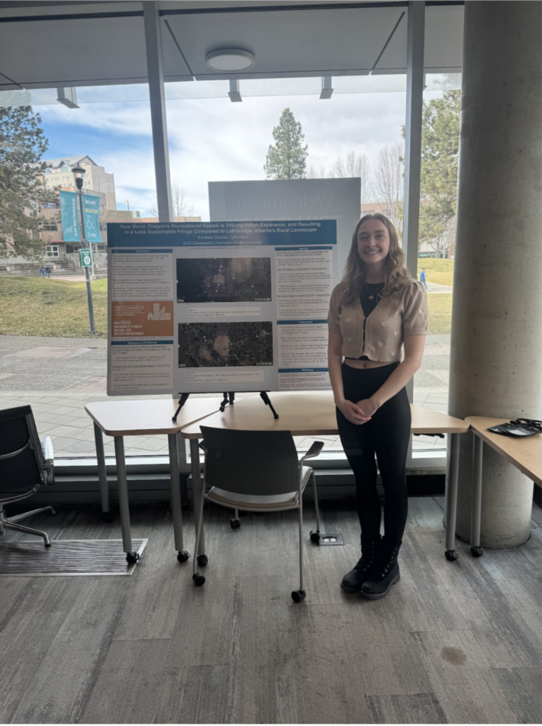 The photo on the left showcases the poster I presented at WDCAG in March 2024 – “The Survival of Rumbling Glacier, An Alpine Glacier In The Southern Coastal Mountains.” The photo on the right showcases the poster I presented at WDCAG as well as at the TRU Undergraduate Conference in March 2025 – “How Bend, Recreational Appeal is Driving Urban Expansion, and Resulting in a Less Sustainable Fringe Compared to Lethbrigde, Albertas Rural Landscape.”